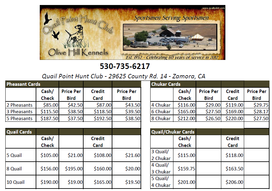 Chukar/Quail Day Shoot Season ends March 30, 2024 or while supplies last